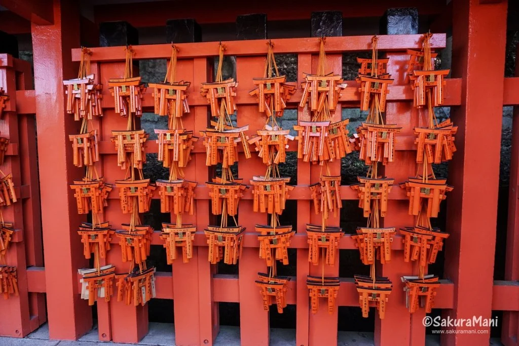 Torii shaped ema at Fushimi Inari Taishi (伏見稲荷大社) in Kyoto. This shrine is the head shrine of Inari (fox) deity. Fushimi Inari Taishi is mostly popular for its ten thousand torii gates.