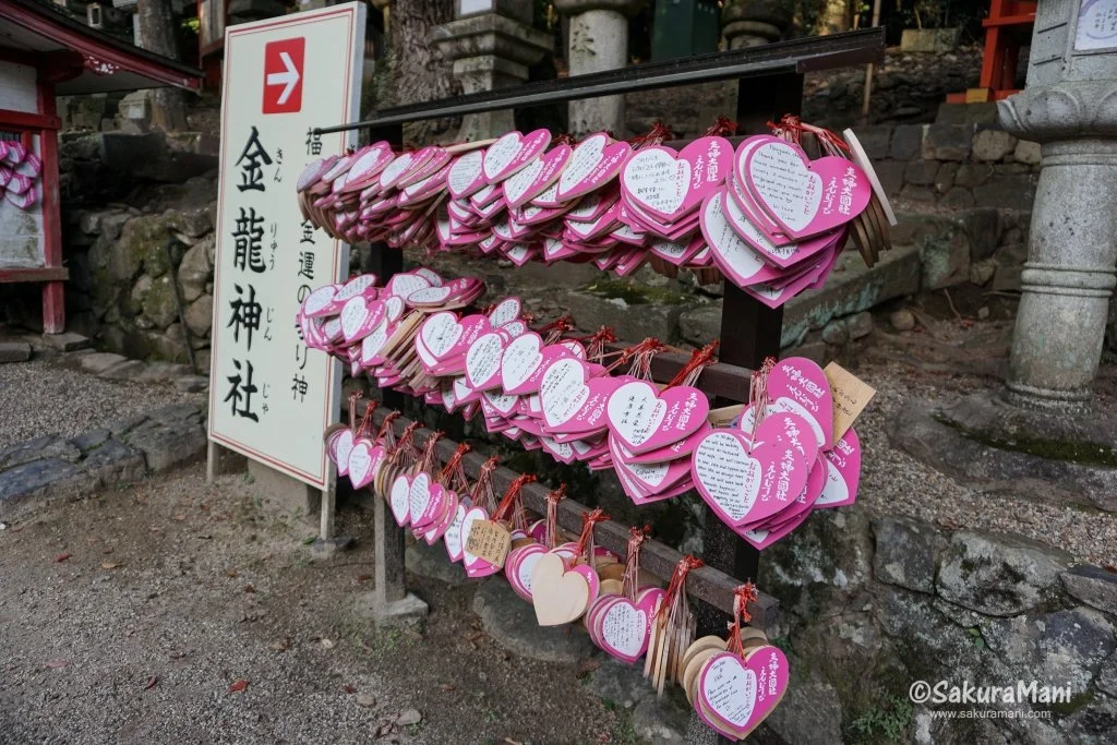 Heart-shaped ema at Kinryuu shrine (金龍神社) near Kasuga Taisha in Nara. Married couples visit this shrine to pray for the longevity of their relationship to the married deities enshrined here.