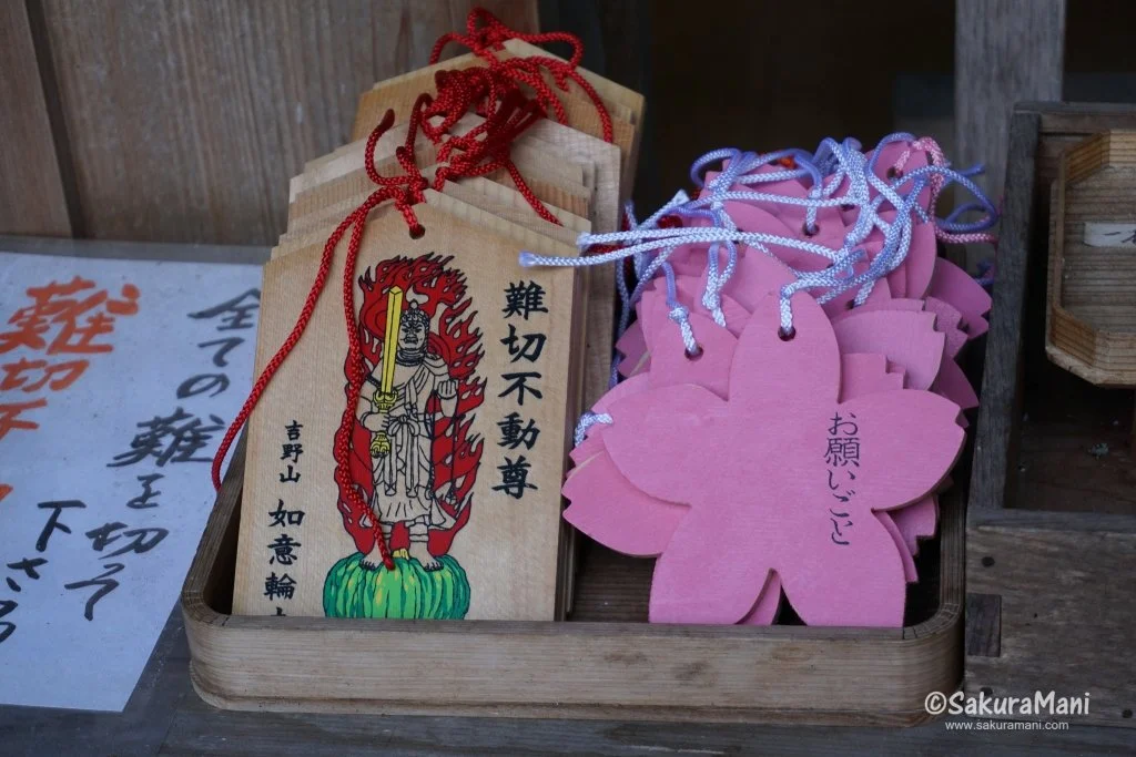 Ema at Nyoirinji (如意輪寺) in Yoshino. The enshrined deity here is Nankiri-Fudoson 難切不動尊 or Acala (in Sanskri)Yoshino is also one on the most popular place to view cherry blossoms (sakura) in Japan.